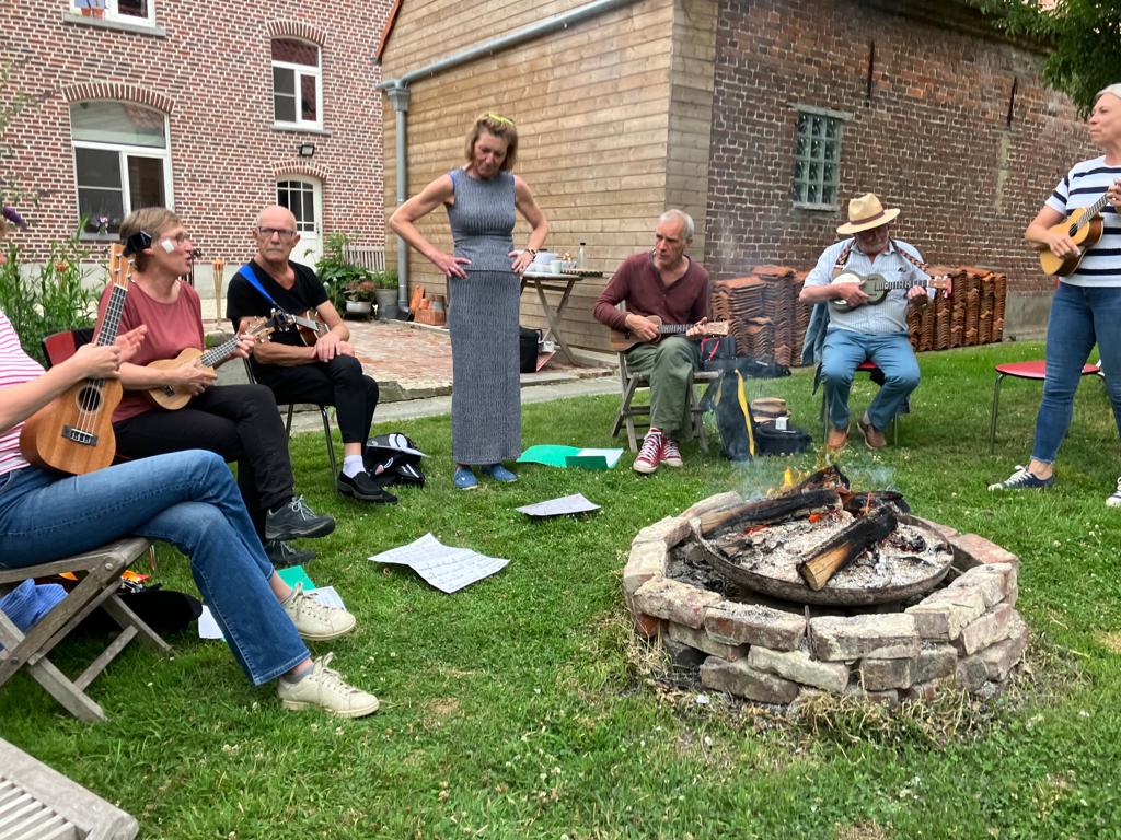 Samen zingen. Samen rond het kampvuur. Iedereen wordt er vrolijk van.
